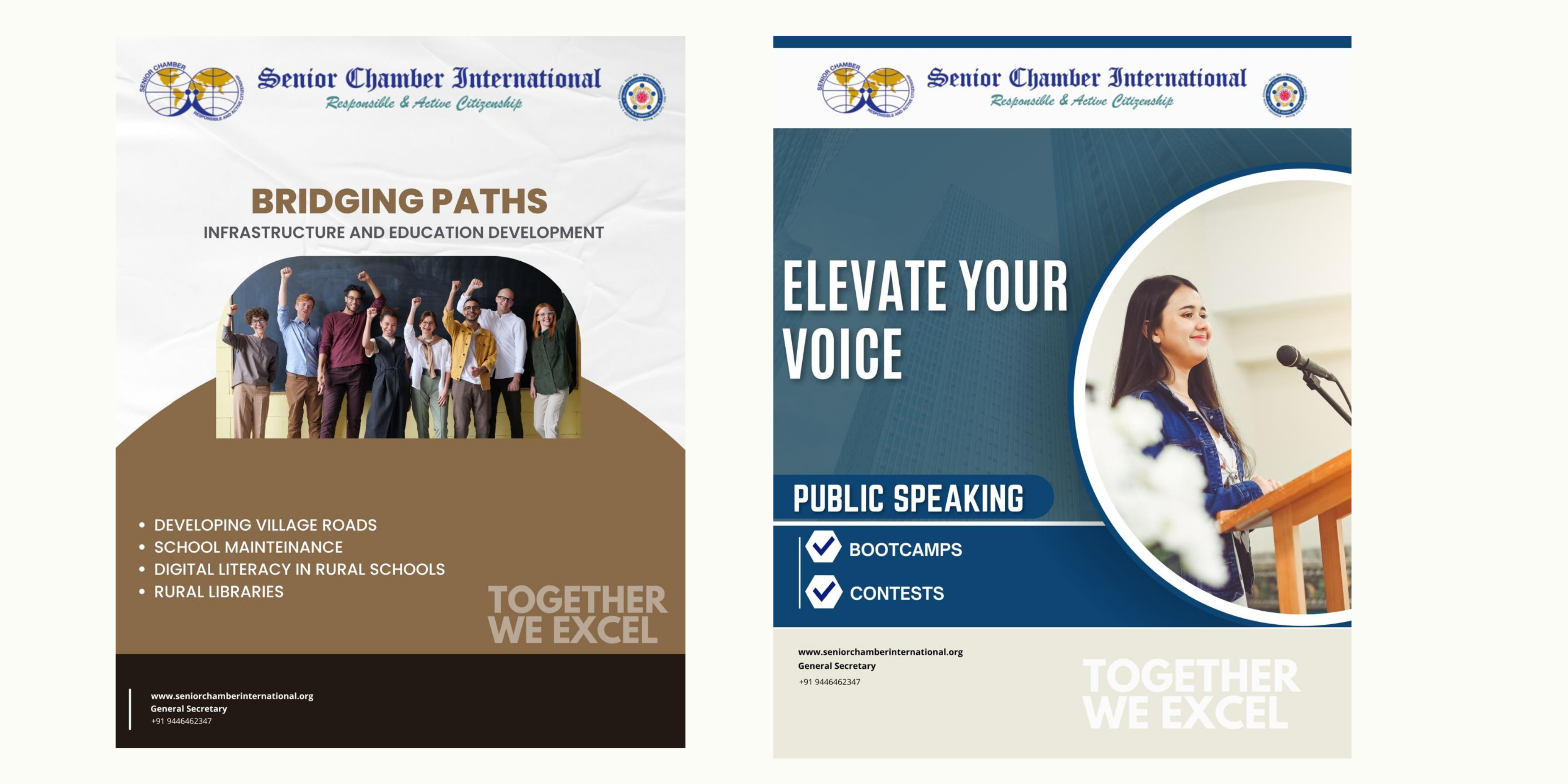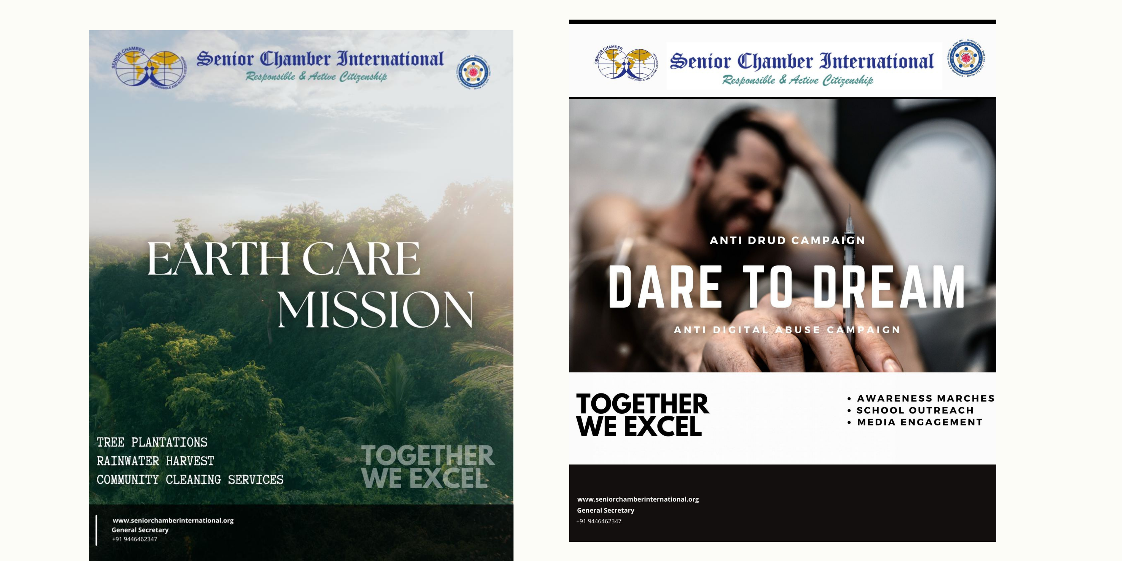 The social responsibility, involvement and bondages are the integral part of human life of an active citizen. It is a general observation that the services of experienced, well- trained individuals have not been utilized by the society to their optimum level. The personalised objectives and vast resources of the Junior Chamber/other NGOs have such dynamic and prospective individuals. Hence it was felt that by creating and organizing a Senior Chamber Movement, their skills could further be honed and the society shall be the benefited in large. The Senior Chamber International would aim at channelizing the well- developed experience of socially inclined individuals for serving the community. The membership norms stipulate that the eligible past and current members who have crossed the age of 40 years from JCI and other NGOs to be invited and inducted into the organization.